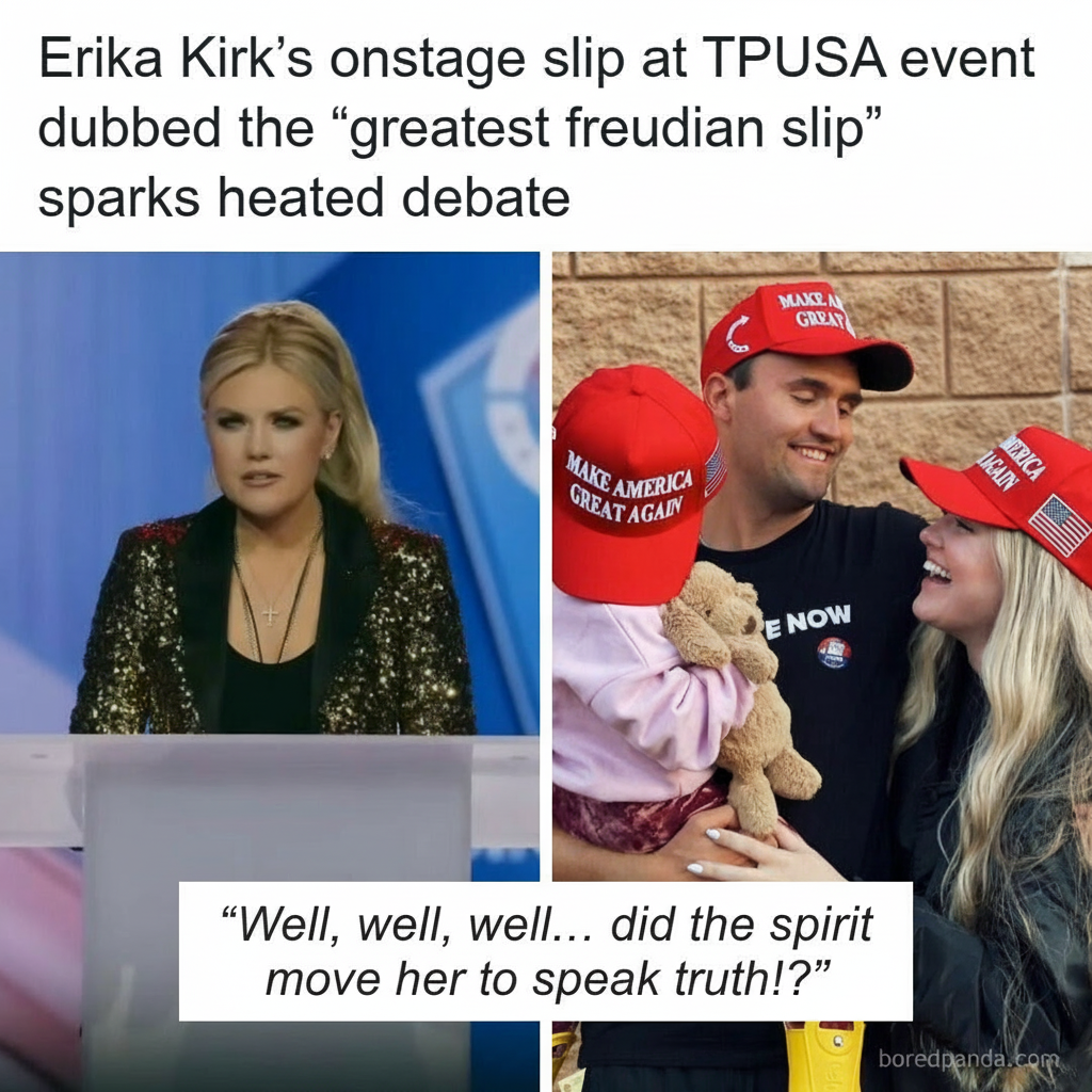 What was meant to be an emotional tribute to her late husband Charlie Kirk’s legacy quickly turned into a viral moment after Erika Kirk made what many are calling the “greatest Freudian slip of all time.”