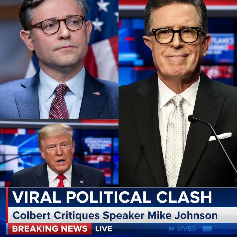 The latest wave of political debate online was triggered not by a press conference or a congressional hearing, but by a late-night television segment in which Stephen Colbert delivered pointed commentary about House Speaker Mike Johnson, turning a routine monologue into a moment that quickly spread across social media and cable news discussions.