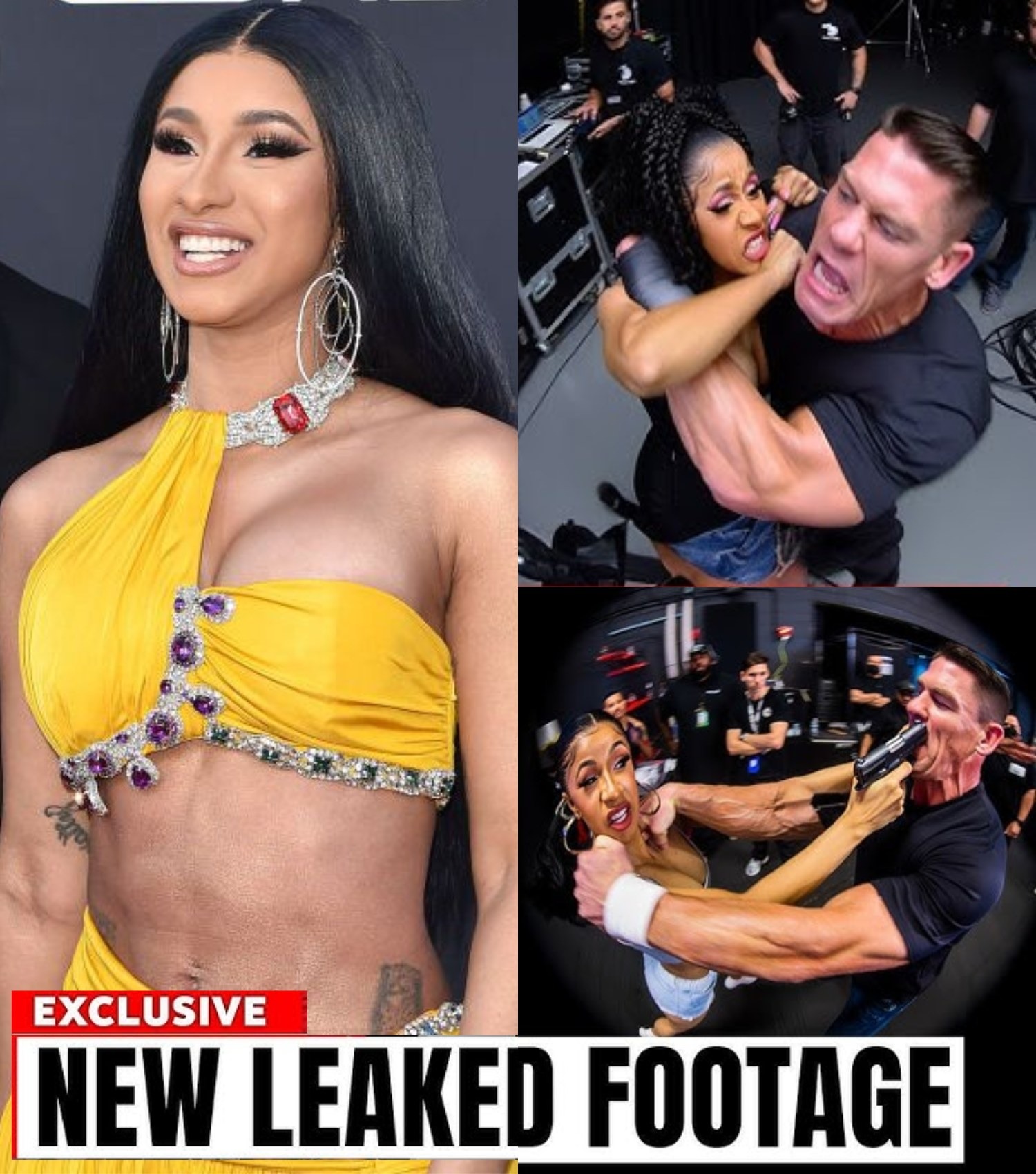 HOLLYWOOD, CA – The internet is in an uproar this afternoon as grainy, shocking footage has surfaced, allegedly showing a physical confrontation between WWE legend John Cena and superstar rapper Cardi B on the set of their upcoming blockbuster film, Heist Hart.