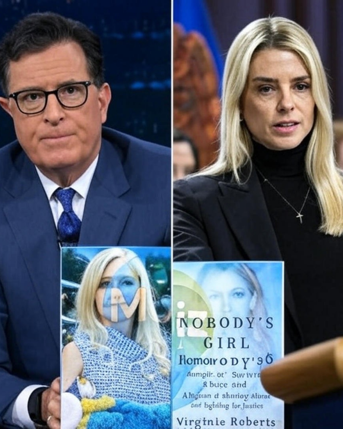 “I would encourage Pam Bondi to read Nobody’s Girl,” Colbert said, his tone measured but unmistakably pointed. “Maybe she’d understand why keeping those files sealed is not just bureaucratic — it’s moral cowardice.”
