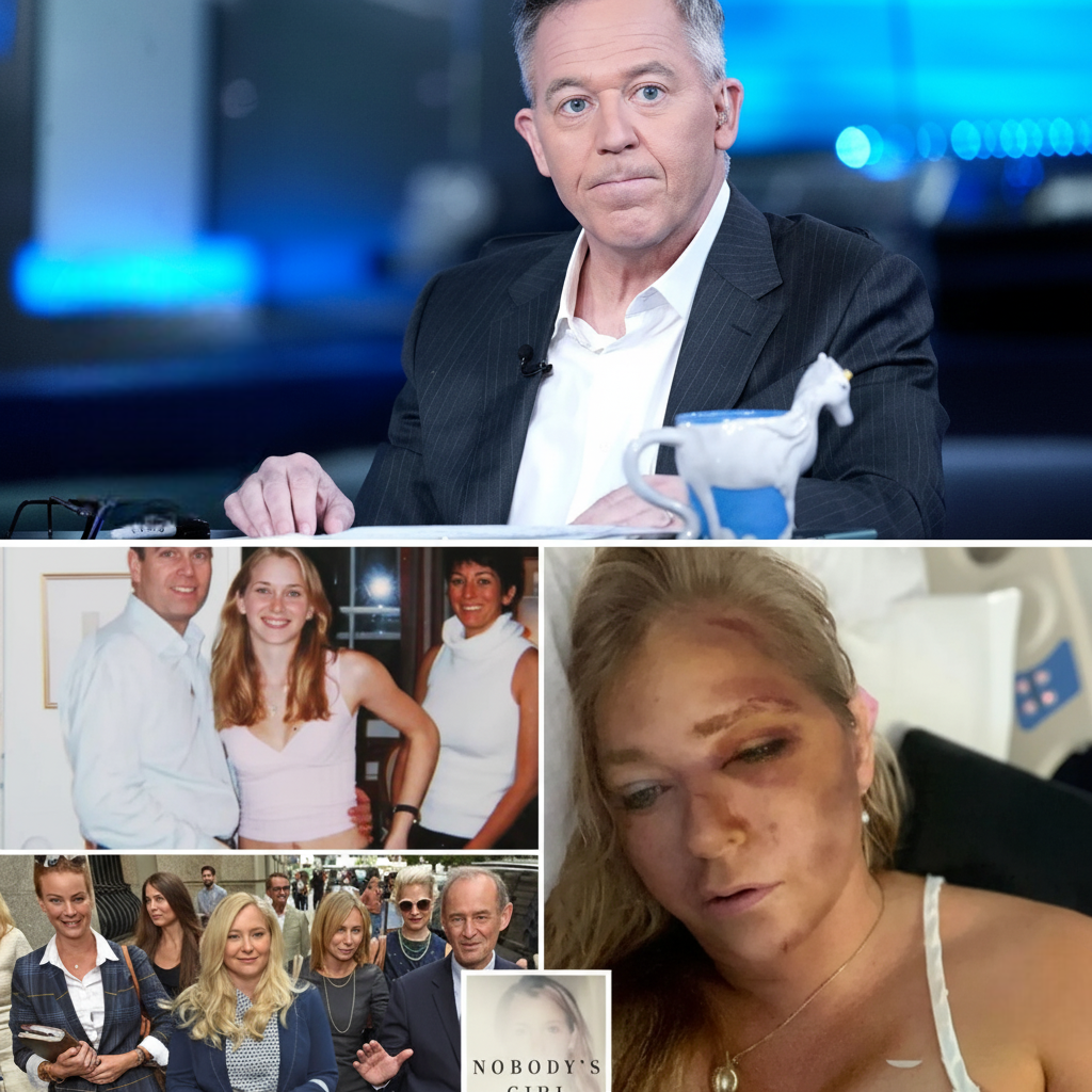 Greg Gutfeld sat motionless under the studio lights, the audience bracing for his usual sharp wit — but instead, they were met with a profound silence. Moments earlier, he had just finished reading Virginia Giuffre’s posthumous memoir, a harrowing and searing account that tore through the layers of one of America’s most shameful scandals.