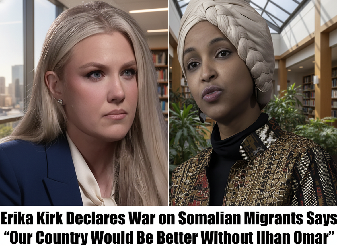 Erika Kirk, the newly appointed leader of Turning Point USA, made a statement that immediately captured national attention, declaring that the country would be better without Somalian migrants and suggesting that the process should begin with deporting Ilhan Omar.