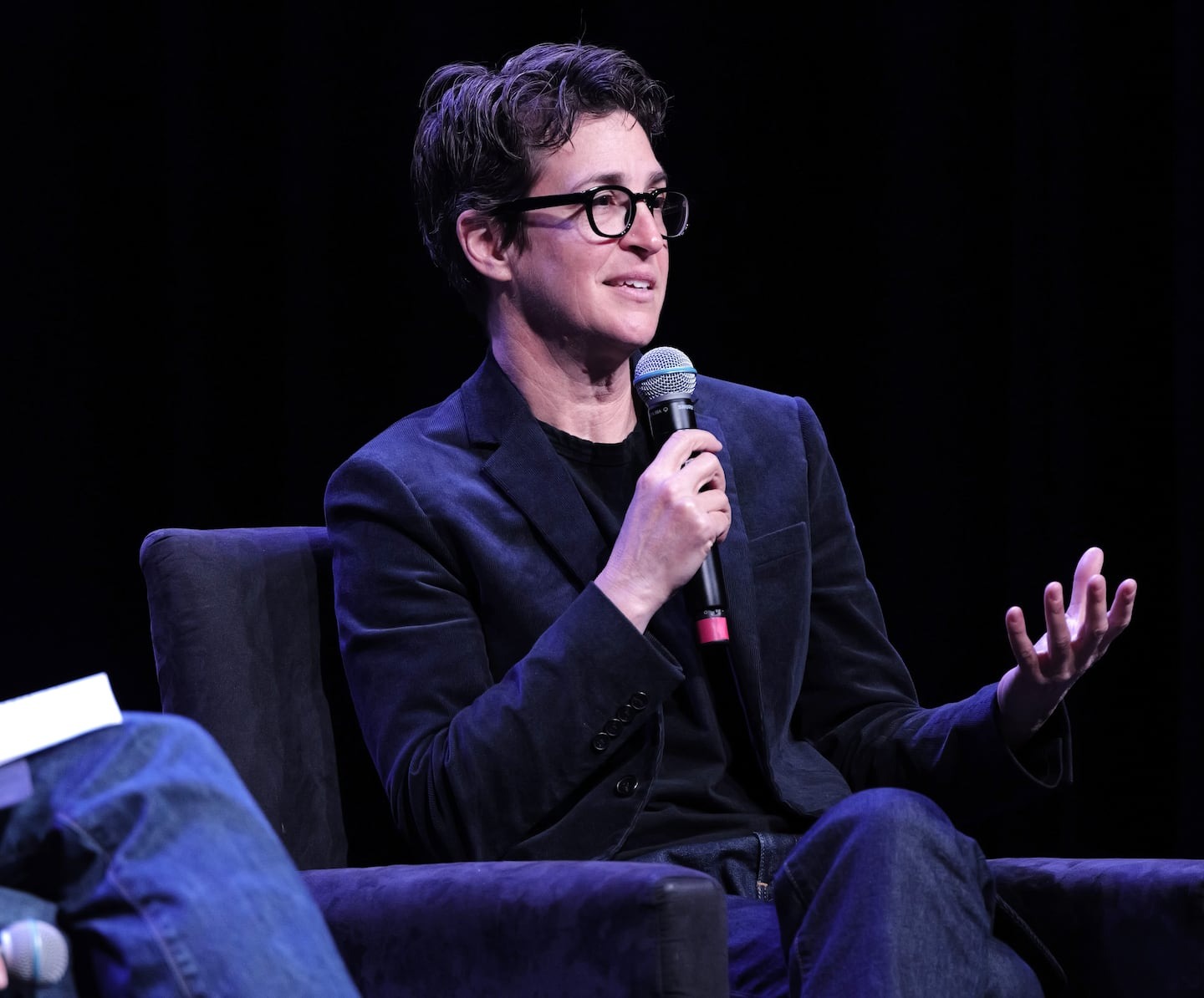 Instead, Rachel Maddow leaned forward, elbows resting lightly on the desk, her expression unreadable. She didn’t flinch. She didn’t sneer. She didn’t even blink rapidly, the way people tend to do when startled on live television.